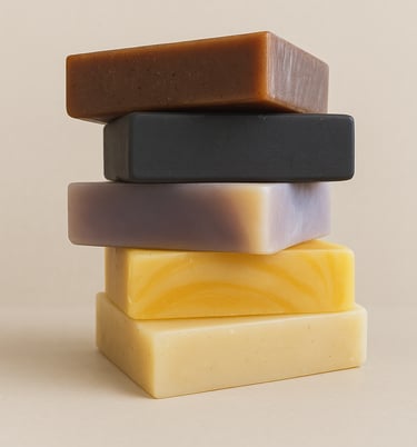 Pack Contents: Donkey Milk, Lavender, Charcoal, Kesar & Cocoa Soap